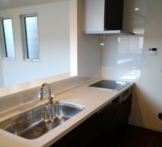 キッチンはシンプルに作り、充分に作業出来るスペースを作りました。 |