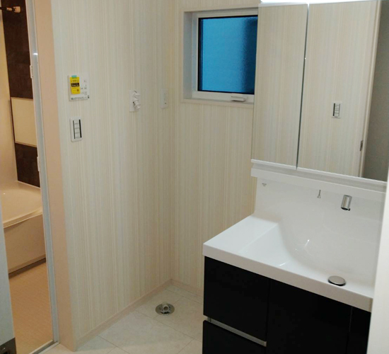 脱衣スペースは、明るく動きやすいスペースにデザインしました。